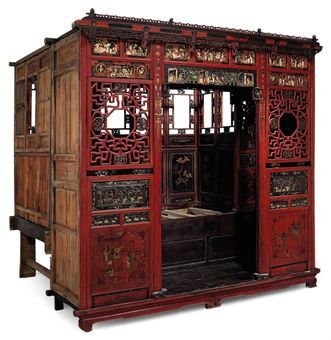 The first raised seating was a platform that became a daybed, eventually gaining carved side panels and an "entrance." Such daybeds came to be very complex enclosures, nearly like little rooms unto themselves.
